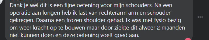 Ik heb al veel geprobeerd op sportgebied, maar kreeg altijd snel klachten na bewegen. deze oefeningen werken echt voor mij”
