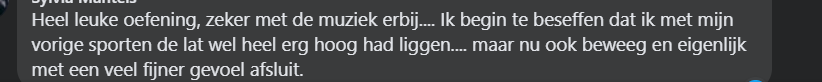 “Ik ben vol enthousiasme begonnen en vind het fijne oefeningen.